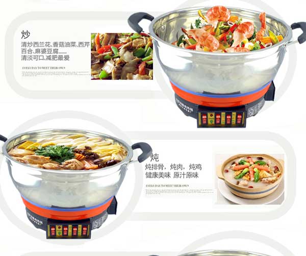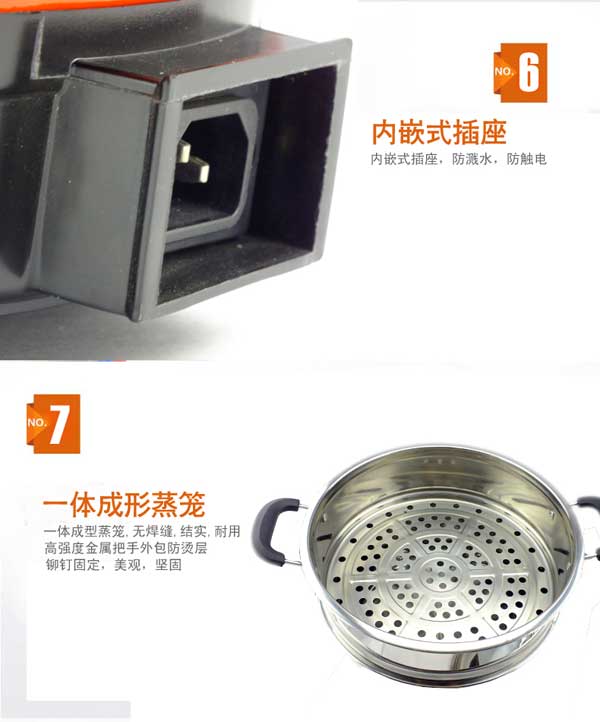 七代大鍋頭電熱鍋,多功能,煎、炸、炒、烙、蒸、燜、涮樣樣精通,鍋體采用不銹鋼制造,蒸籠采用不銹鋼一體成型蒸籠,內(nèi)部采用三根加熱管獨(dú)立加熱,三檔+保溫?fù)跷?,?nèi)部設(shè)有溫控器,可有效防止干燒導(dǎo)致電熱鍋的損壞,結(jié)實(shí)耐用,美觀實(shí)用。
