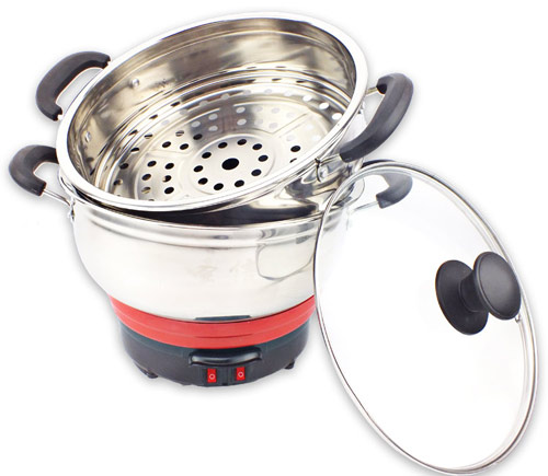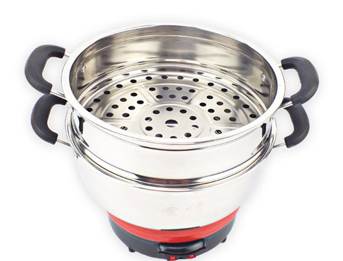 多功能小電熱鍋,24CM 26CM兩種規(guī)格,內有兩根加熱管獨立加熱,雙檔控制,內部設有溫控器,可有效防止干燒導致電熱鍋的損壞,配置不銹鋼一體蒸籠,更結實更美觀。