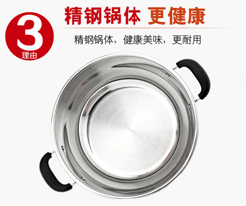 24/26CM小電熱鍋,24CM 26CM兩種規(guī)格,內有兩根加熱管獨立加熱,雙檔控制,內部設有溫控器,可有效防止干燒導致電熱鍋的損壞,配置不銹鋼一體蒸籠,更結實更美觀。